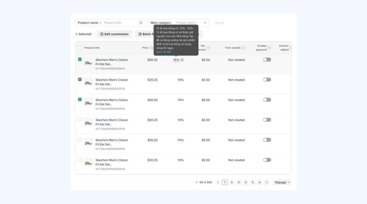 Bước 3: Để quản lý chi tiết hơn, bạn có thể nhấn vào “Xem chi tiết”. Ở phần này, hệ thống hiển thị tỷ lệ hoa hồng của từng sản phẩm cụ thể. Nhờ đó, bạn có thể điều chỉnh phù hợp với chiến lược giá và mục tiêu kinh doanh.